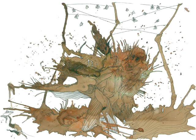 珈琲跡に筆をくわえてあらわれる不気味で可愛いモンスター