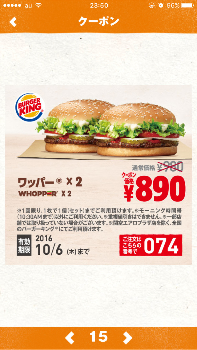 近所にバーガーキング無いから写真と現物の差とかも知らないけど>>147みたいなクーポン見ると行ってみたくなる。
