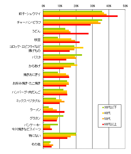 何かと使えるミックスベジタブルがランク外なのは驚き
