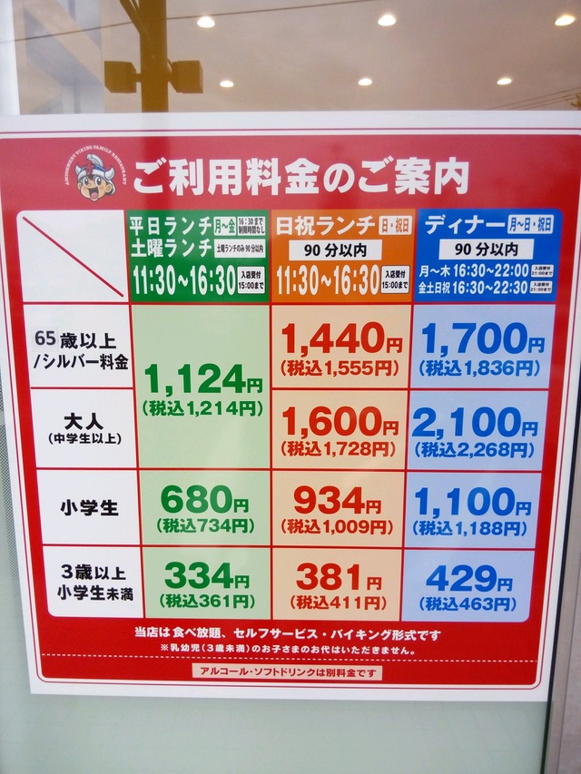 料金表wwwww値段が安いのは平日のランチだけwwwww たまに時間拡大する模用wwwww