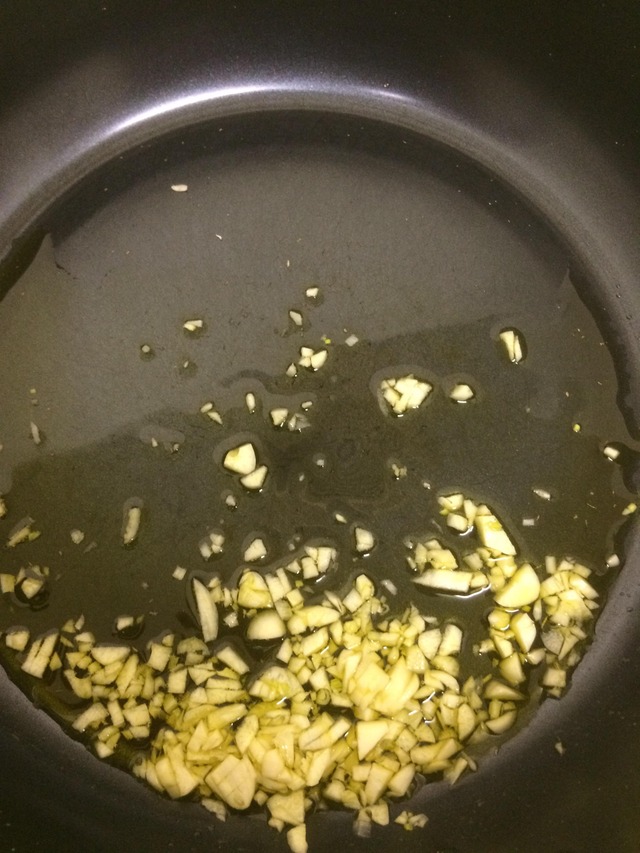 まずはにんにくを弱火でゆっくりオリーブ油に味を出していきます