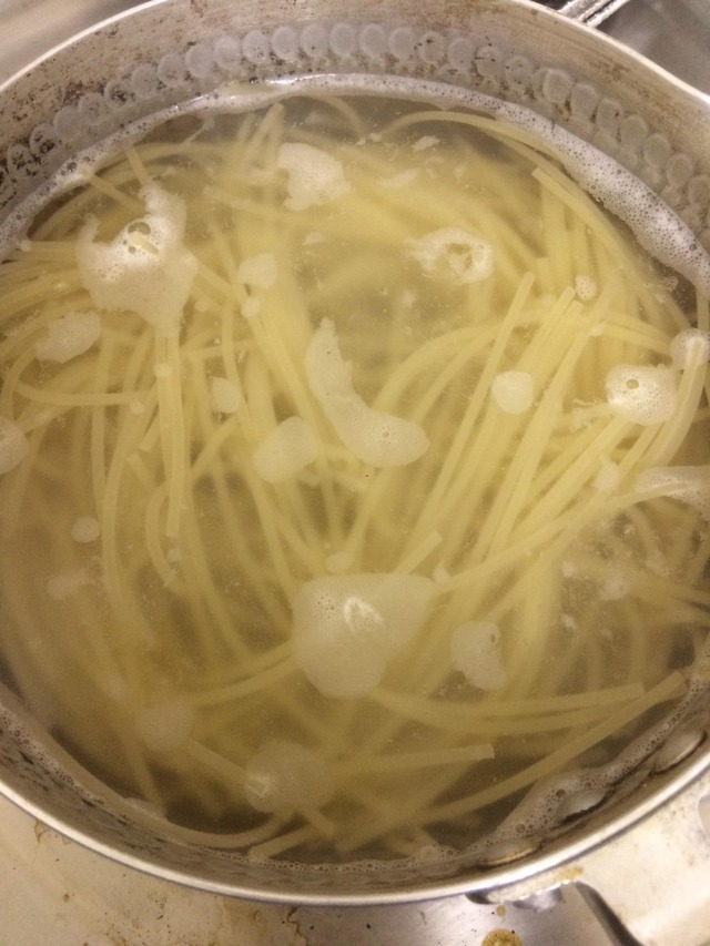 沸騰したらパスタを入れるんだけどちょっと早過ぎた