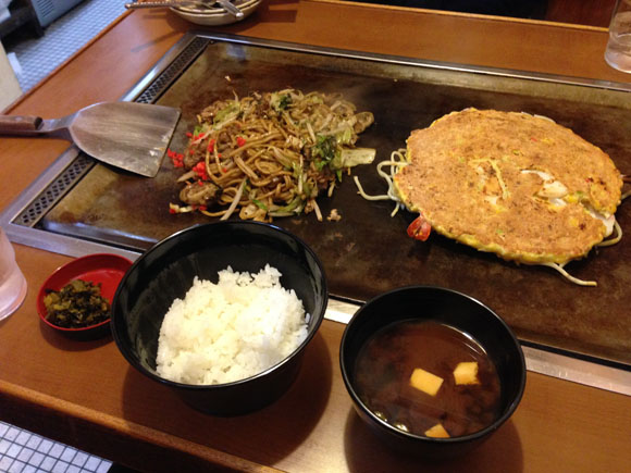 お好み焼き屋さん(道とん堀)ではお好み焼きと焼おにぎりを頼むけどな