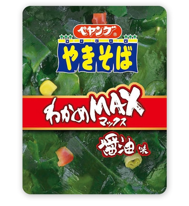 『ペヤングわかめMAXやきそば』は、大量のわかめと醤油ベースの味わいが楽しめるカップ焼きそば。