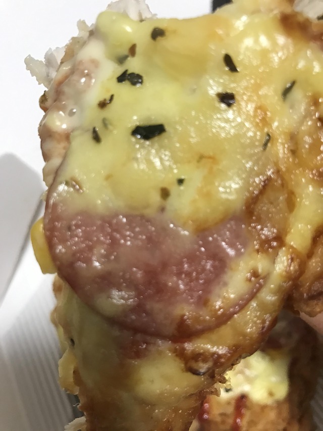 チキンとソーセージとチーズの絶妙なハーモニーで激ウマ。ペロリ完食でしたわ。