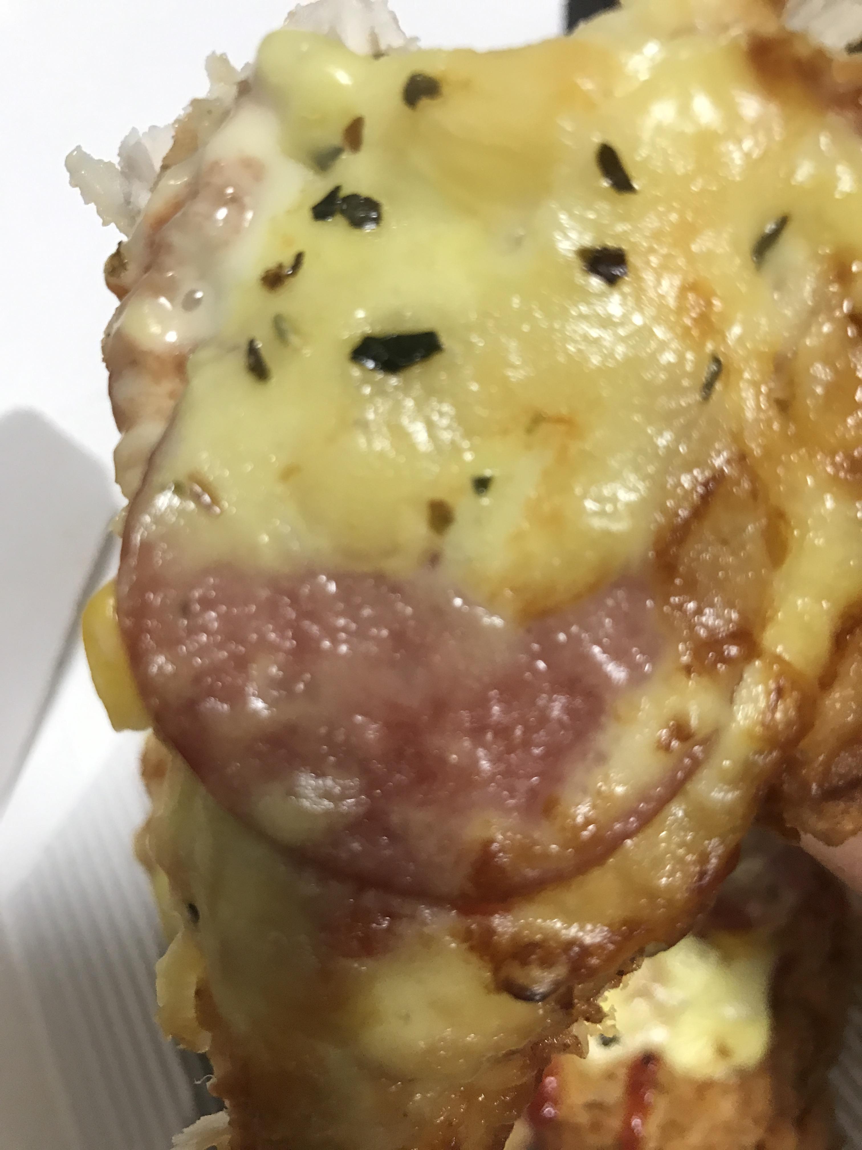 ケンタッキー骨なしチキン買ってチーズ、サラミ、コーン、バシルつけてオーブンでできるやん