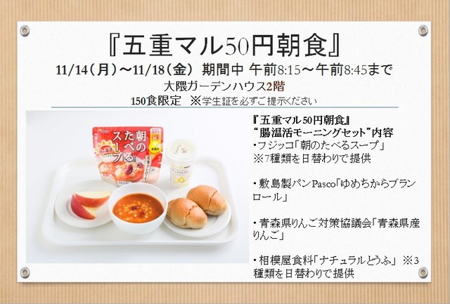 これは学生証出さんと食えないみたいや。普通のメニューなら誰でも食えるで
