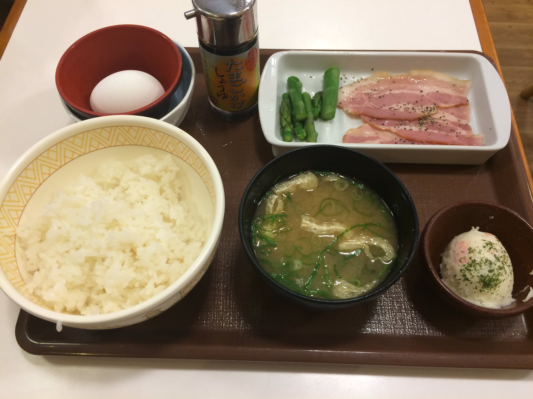 ベーコンアスパラたまごかけごはん朝食 並350円食べてみた