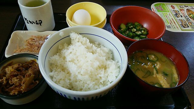 松屋でごはん、味噌汁、目玉焼き単品