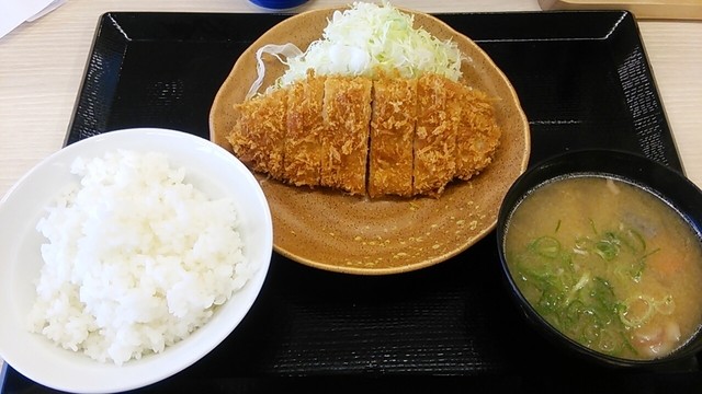 1、かつや:朝ロースカツ定食+とん汁大に変更-100円割引券使用@429円