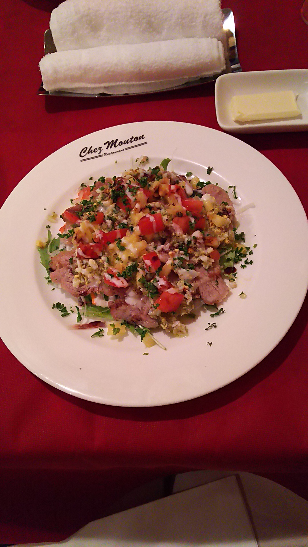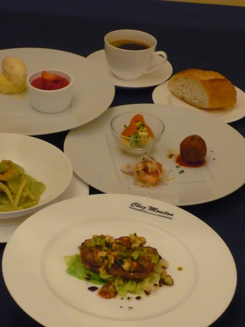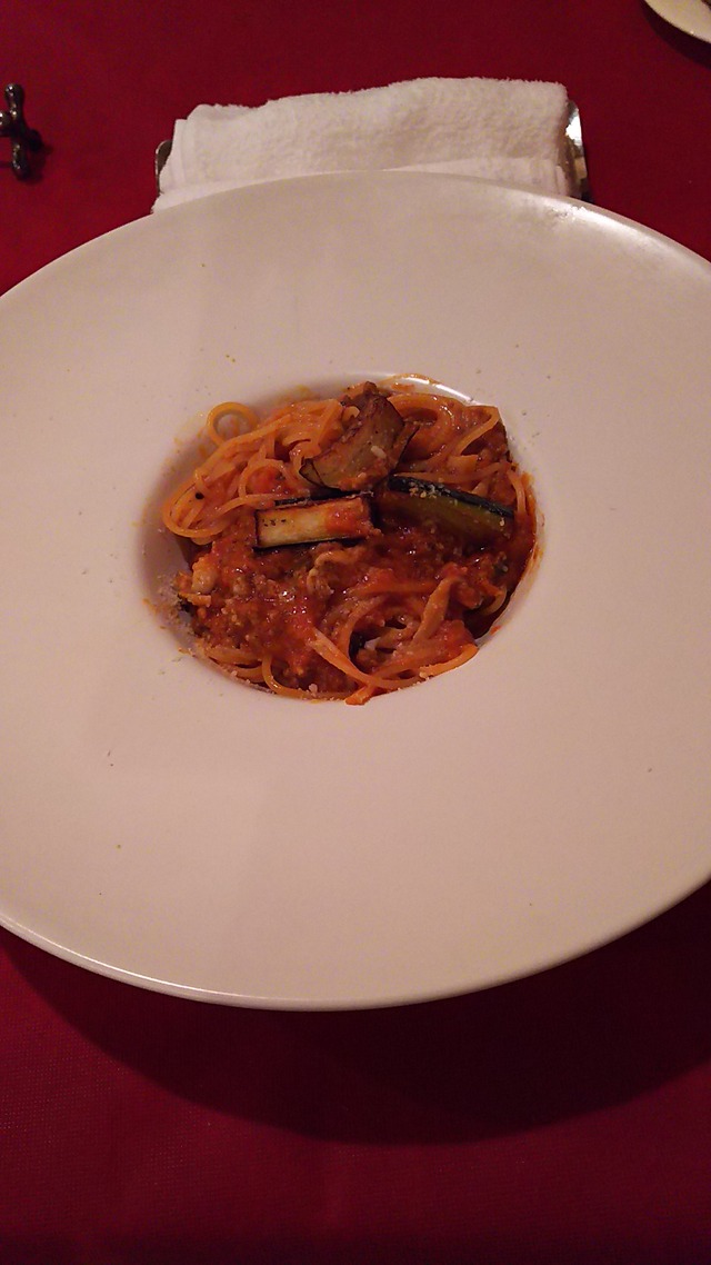 前菜の盛りの良さと肉が美味そうなんだけど、どうしてもパスタ皿が気になるw