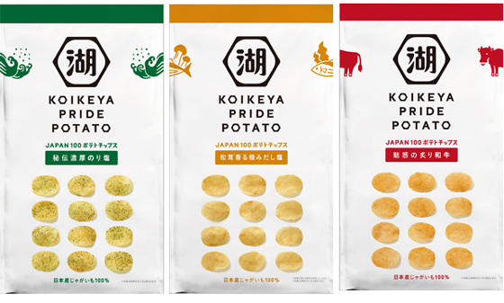 湖池屋がロゴマークを変更し、40円高い高級ポテチ「KOIKEYA PRIDE POTATO」を発表!