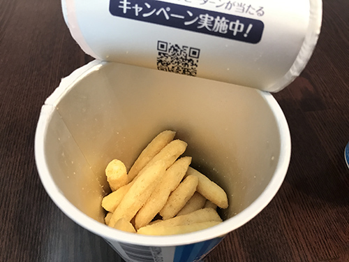 じゃがりことか手を汚さずコップで飲む様に傾けて食えるけど