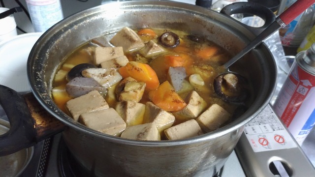 すべての材料を種類別に1回ごま油で炒めておくと灰汁が出にくいんだけどね