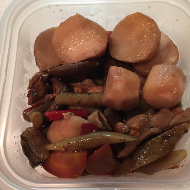 味付けが筑前煮ならいいけど、こんだけ汁気あって同じ味出そうと思ったら相当調味料入れなあかんのちゃうか