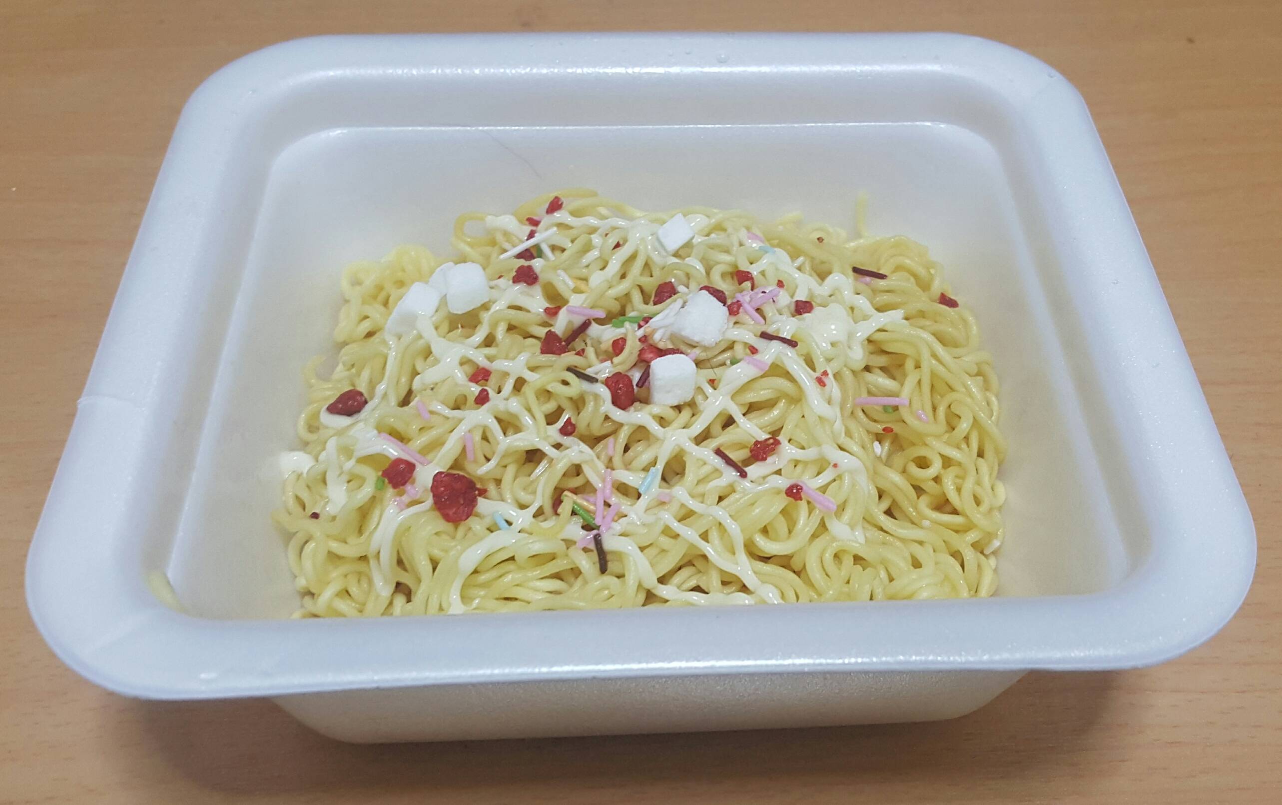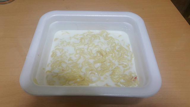 確かお湯入れて捨てるまで中身は素の麺だから少しとりわけて小さい麺で味見したほうがいい