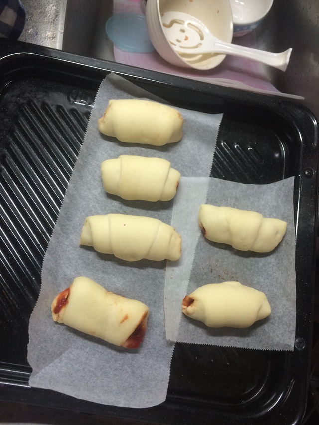 発酵が終わったら一個分に切り分けて生地を休ませるよ