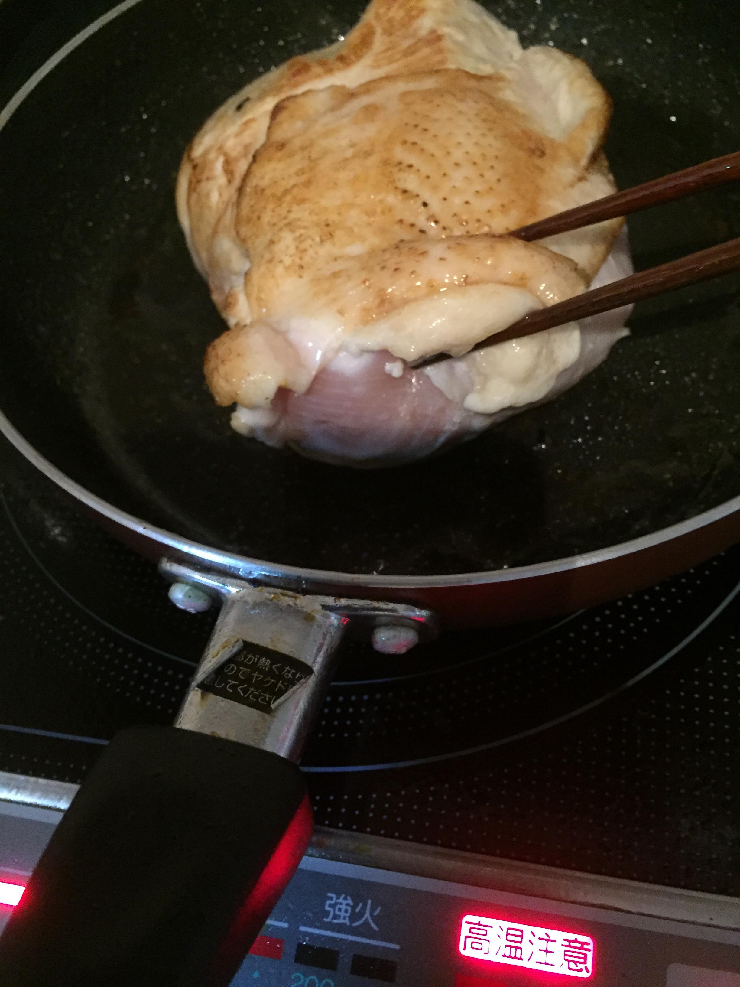 胸肉なら弱火でじっくりか、開いて焼かないとな。
