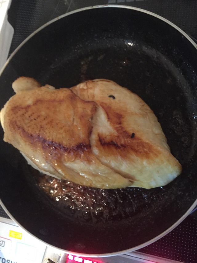 フライパンで焼くときは、胸肉は切り込み入れて開くんだよw