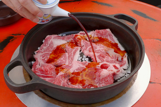 先に肉を焼いて砂糖をどっさり盛るのが関西風?
