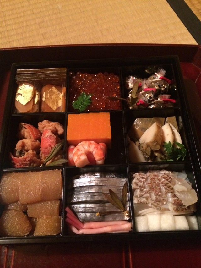 数の子と伊達巻とキントンとローストビーフと鯛