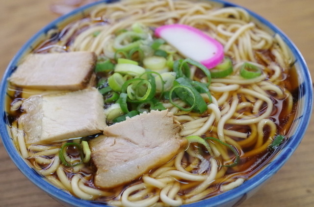 冷麦の温麺な感じ、ちょっと中華風。化調好きのラオタが酷評して去って行く店。地元民向けの常食なので1度食べて感動する味ではない。