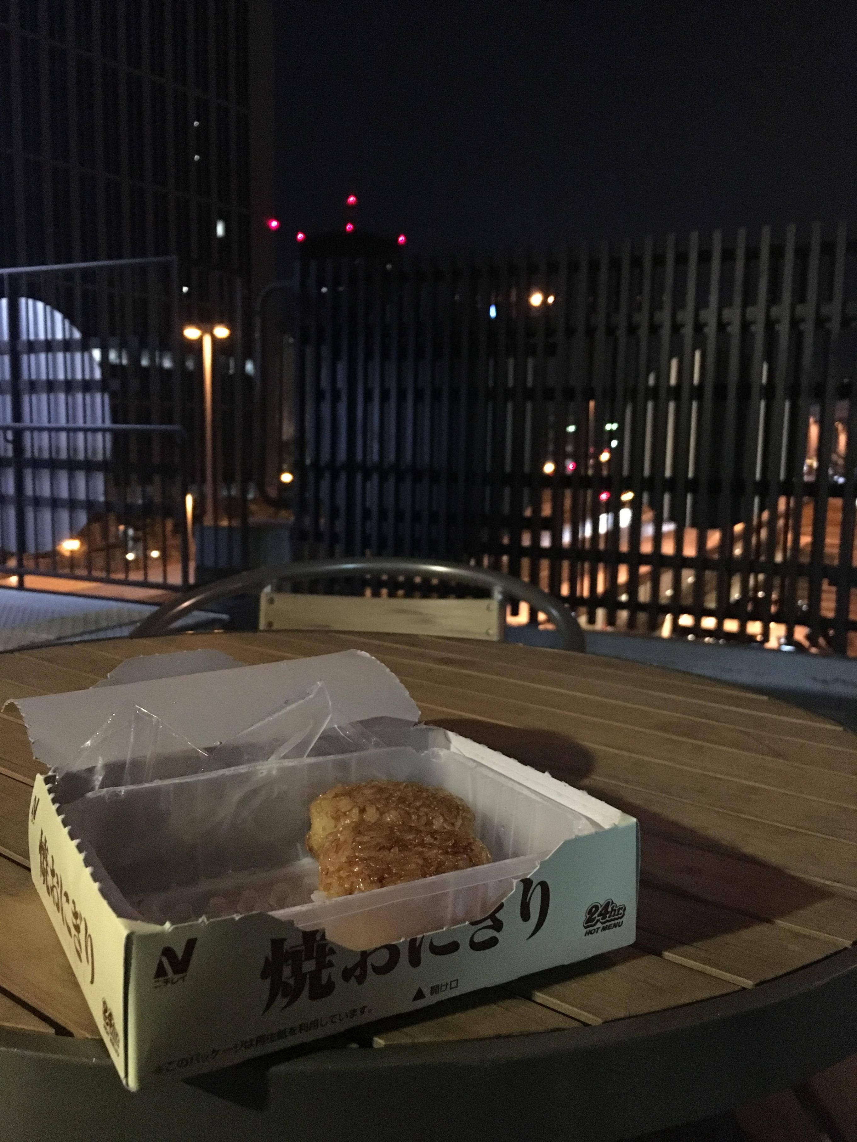 買う順番が逆だね。カップヌードルにお湯入れてから焼きおにぎりのボタン押せば3分のタイマーがわりに使えるよ。