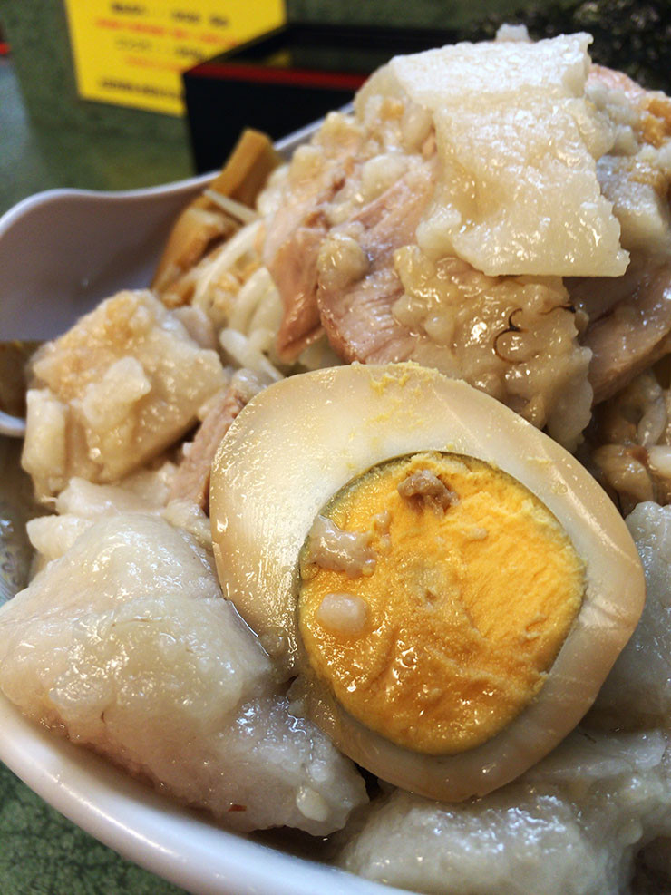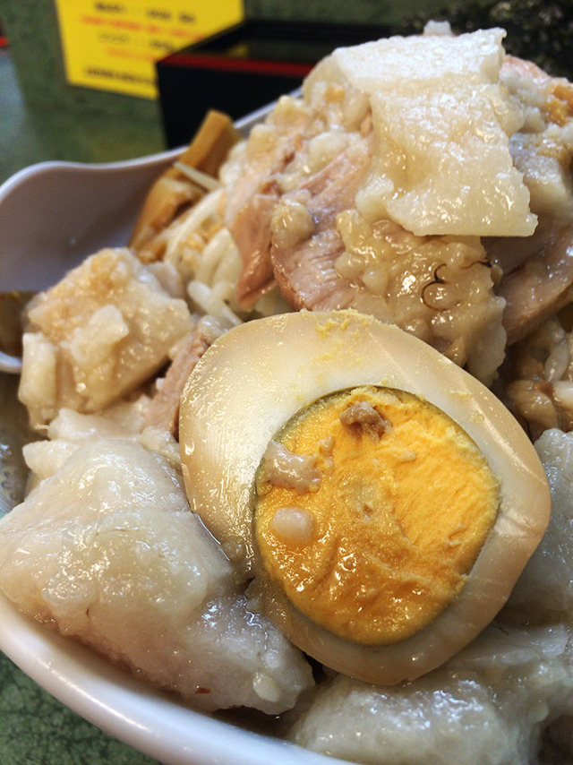 あのこんにゃくみたいな脂、ちゃんとスープに馴染んで溶けるから、食いすすめると見た目が普通になっていくよ。