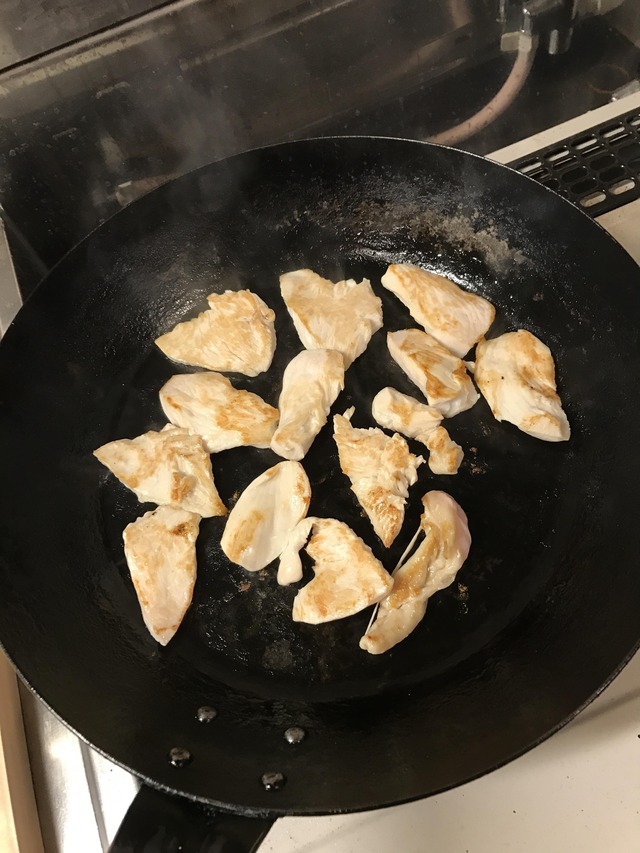 お湯を沸かして酒少々と生姜・白ネギの青いとこを入れ、火を止めた状態のところに鶏胸肉を小1時間漬けてやると、しっとりジューシーになるよ。そのうえで軽くソテーしてやれば完璧な仕上がりだね。