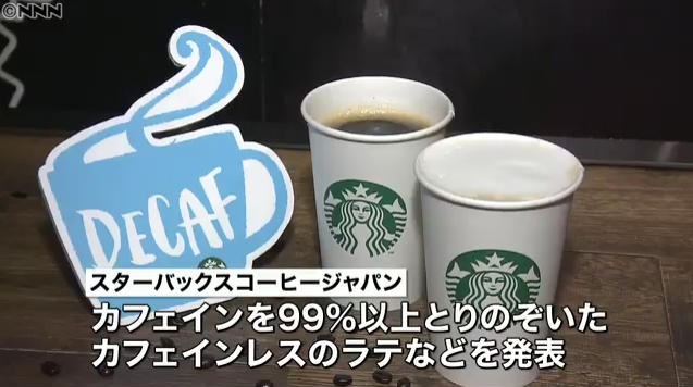 sssp://img.2ch.sc/ico/aroeri-na32.gif スターバックスコーヒージャパンは夜の客の拡大などを狙い、カフェインが入っていないコーヒーの販売を始める。  コーヒーチェーン大手のスターバックスコーヒージャパンは、カフェインを99%以上とりのぞいたカフェインレスのラテなどを発表した。薬品を使わない独特の方法で、コーヒー豆の風味は残して、カフェインを取り除いたという。 続きはソース リンク先に動画あり http://www.news24.jp/articles/2017/01/10/06351163.html