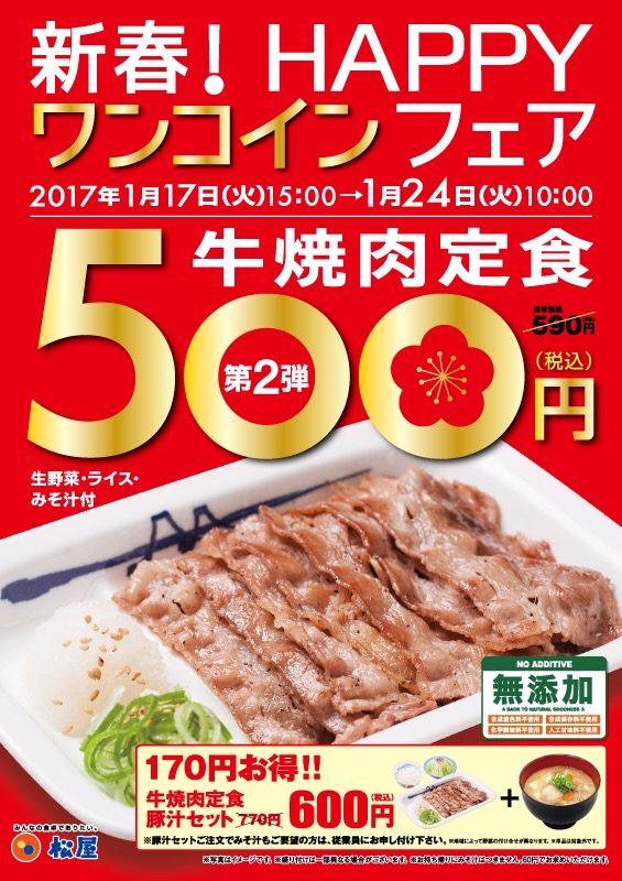 牛焼肉定食はどうでもいいけど、紅白に梅を配置したポスターは好評価