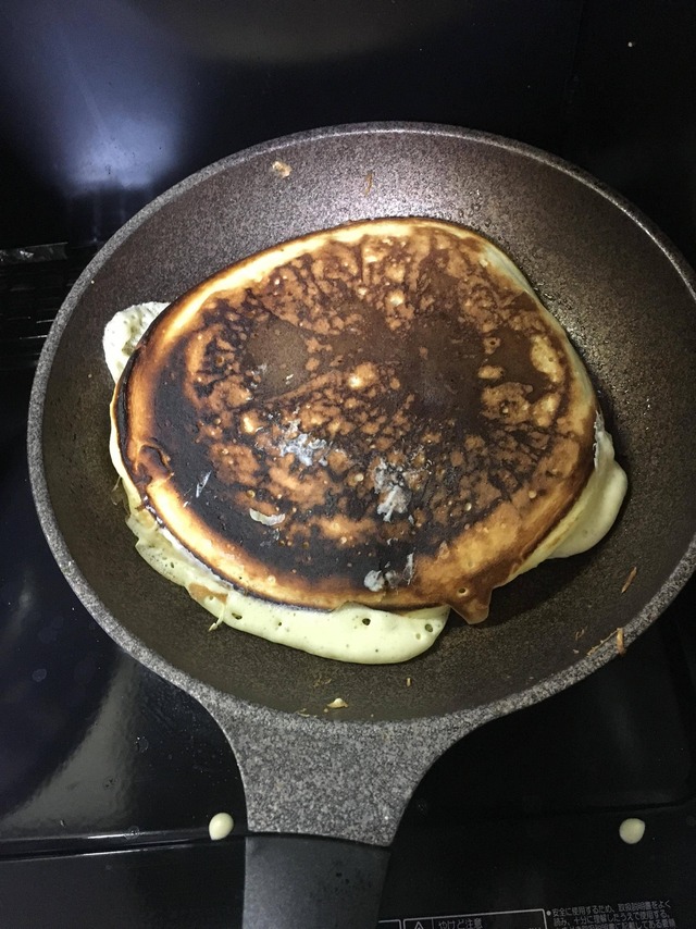ちまちま作ると隙間(ホットケーキ乗ってない)のとこが熱くなり円状に焦げていく