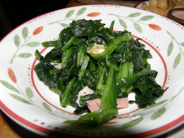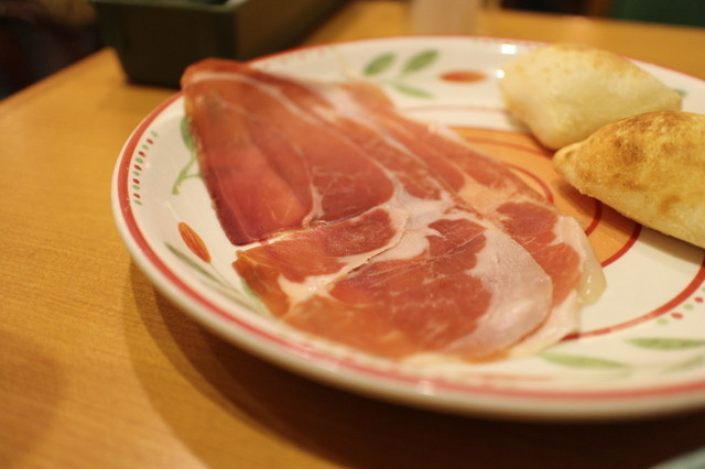 豆と玉子・真烏賊、それにホウレン草のグラタンで個人的には満足するが、ときどきイタリアで食べたのと同じ風味のプロシュートも頼んでみる。