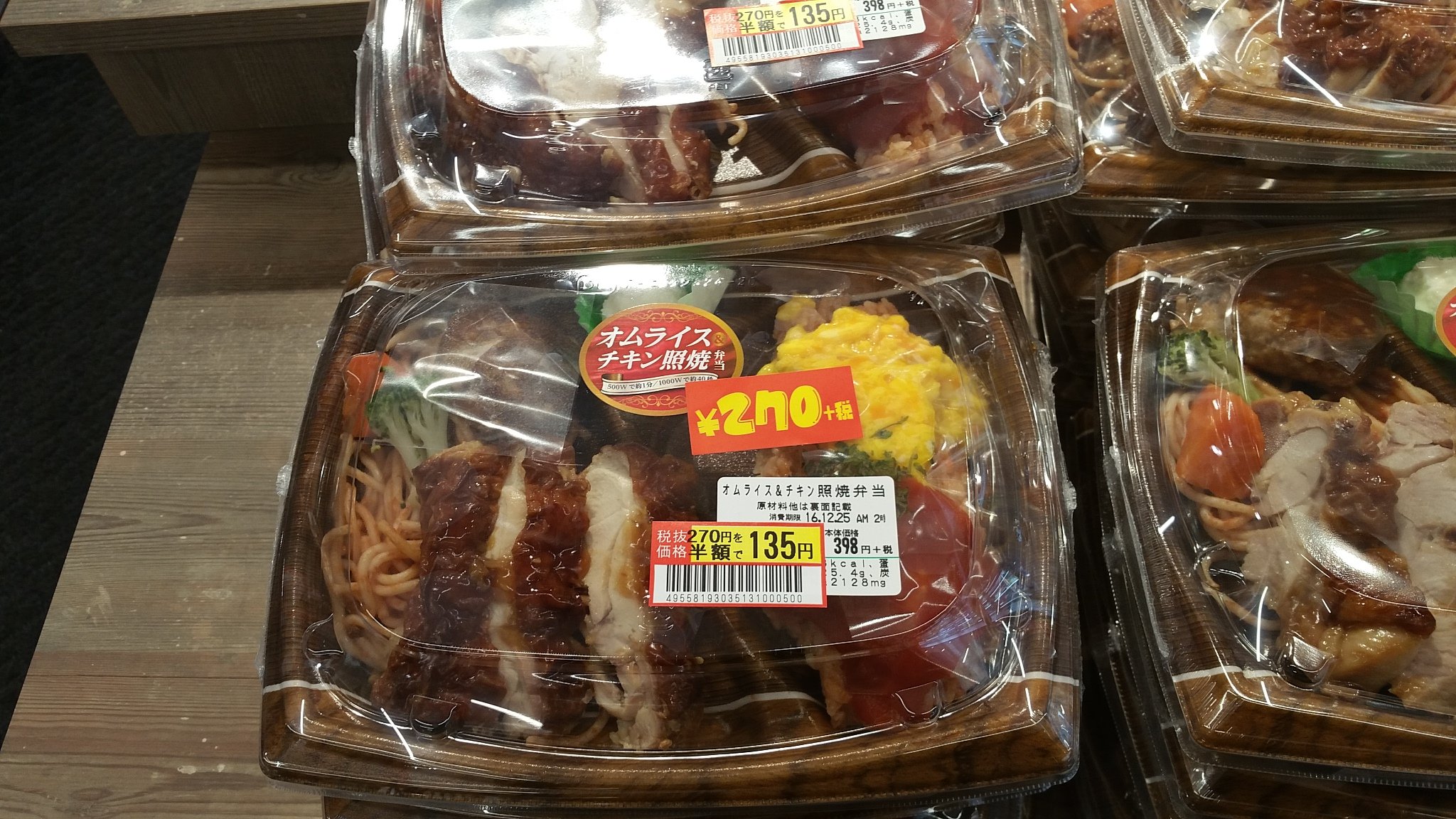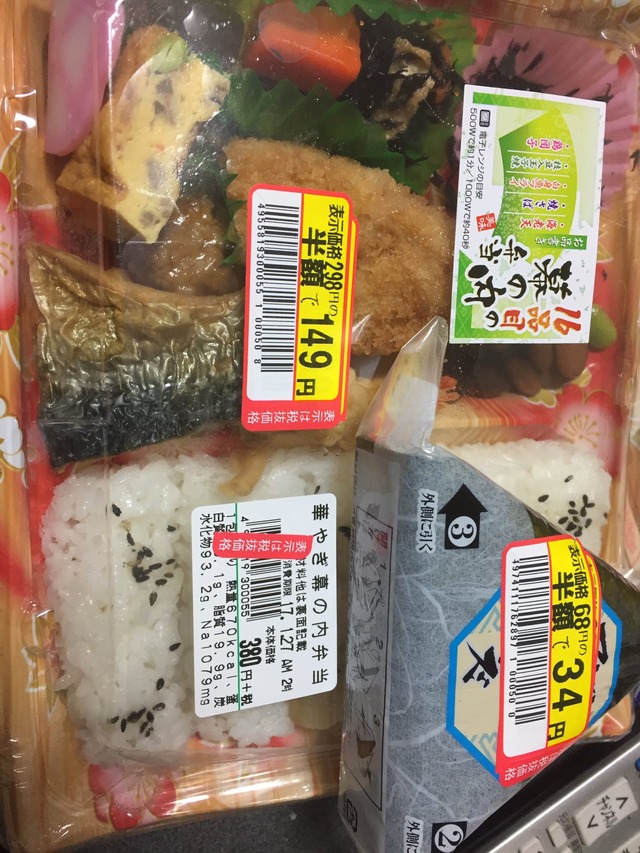 半額だと赤字だね。廃棄よりマシだからだと思うけど、数量減らして売り切れるくらいでいいのにね。どこの店も。