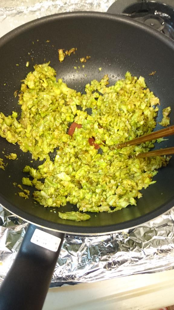 写真だと分かりづらいけど小さめのフライパンにけっこう沢山量増しした