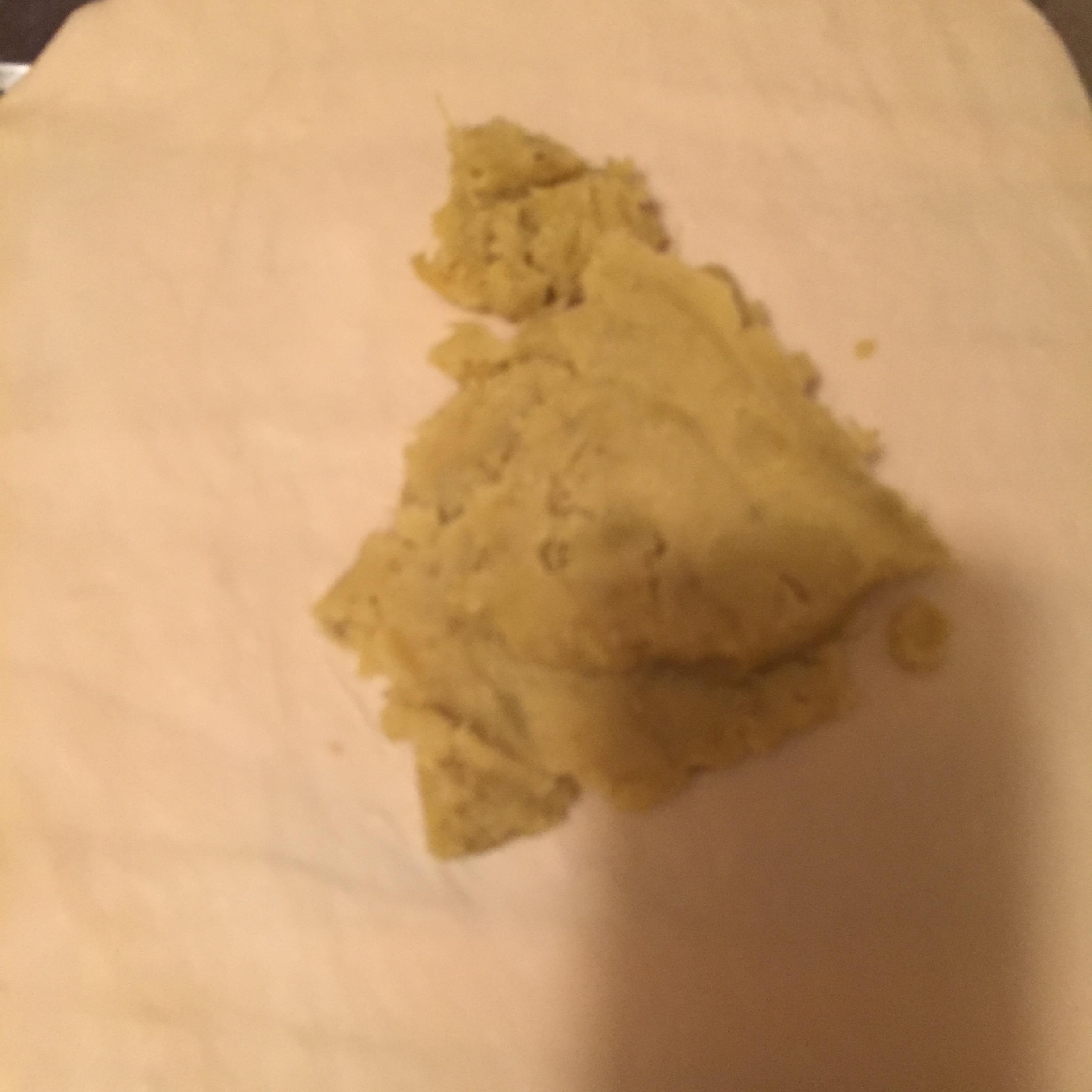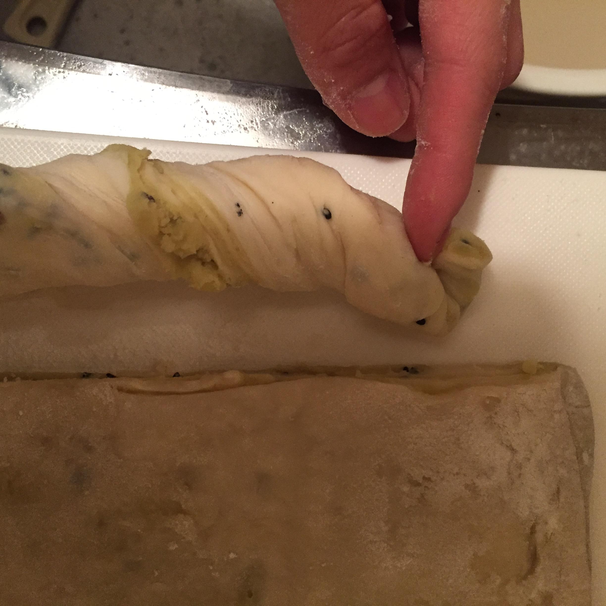 カットした生地を雑巾を絞るように捻ります(´・ω・`)
