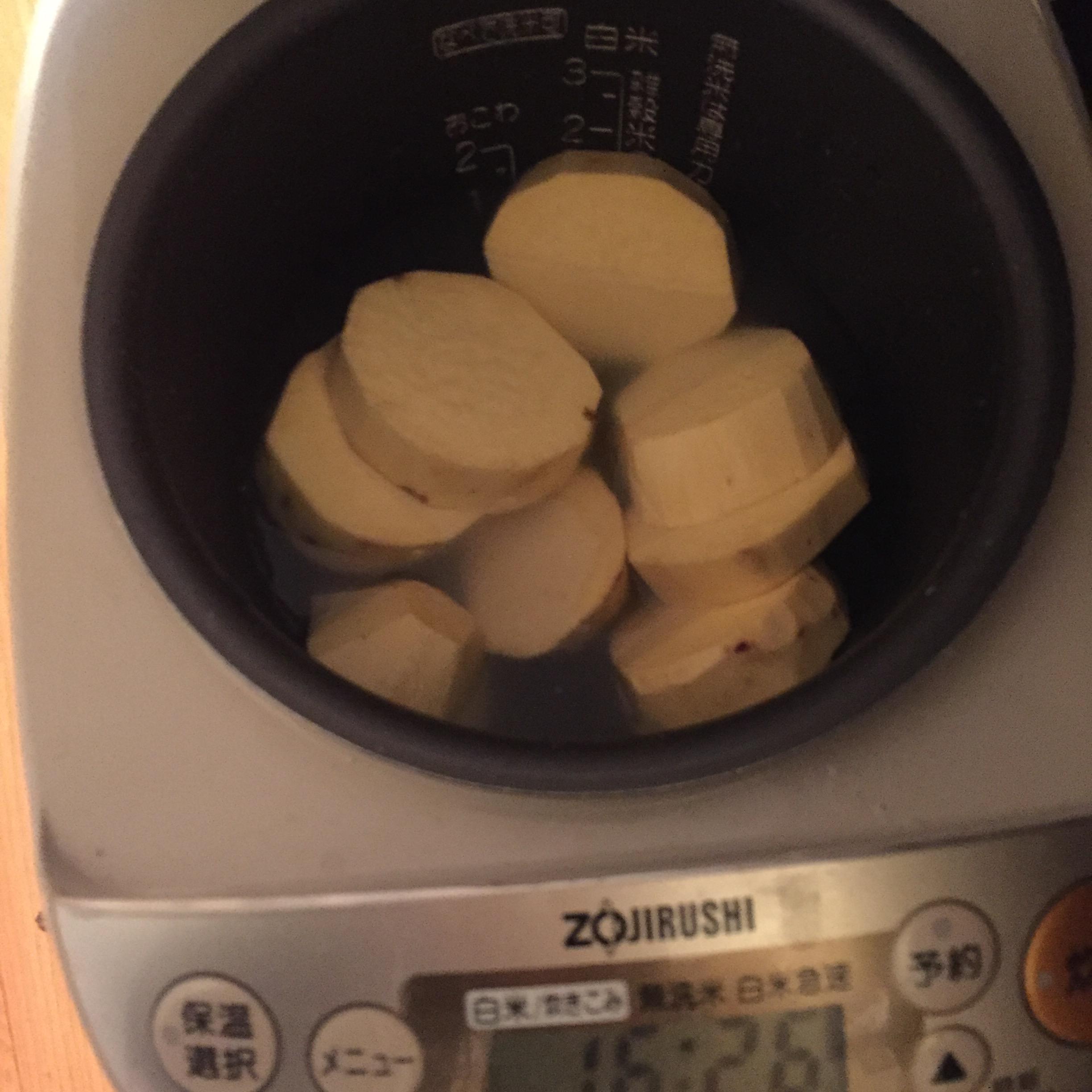 水に晒したさつまいもを炊飯器へ入れます(´・ω・`)