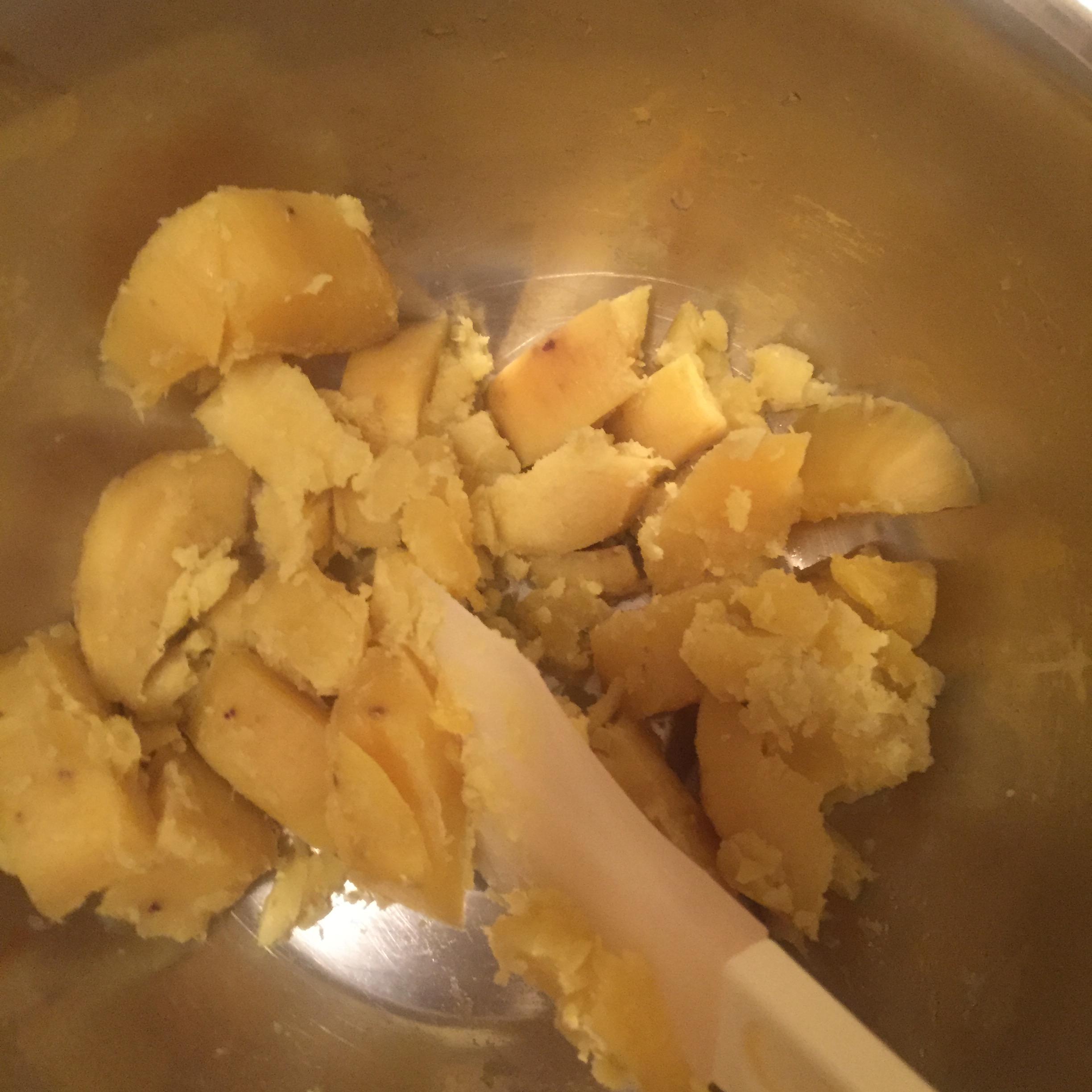 炊飯が終わったさつまいもをお鍋に移して潰すよ(´・ω・`)