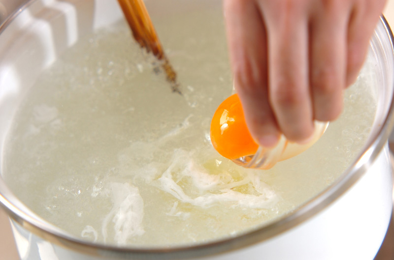 写真の様なの作るのは、白身と黄身をわけて白身だけ攪拌する。