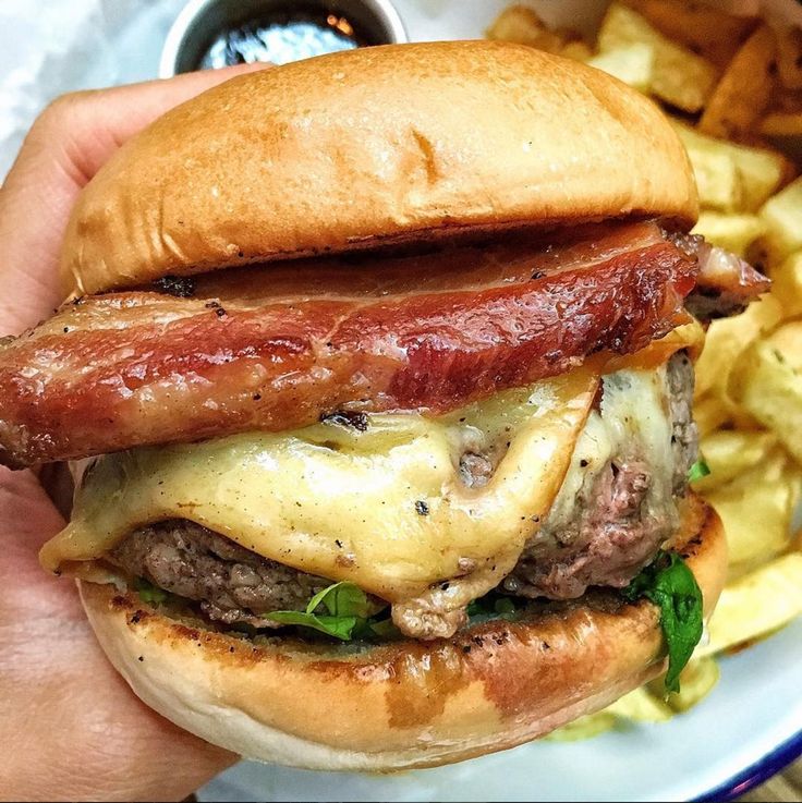 よく見ると巨大ベーコンだけじゃなくてチーズも挟んでるな。
