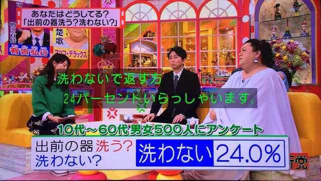 出前の食器を洗って返さない奴が24%も居ることに驚いたんだが