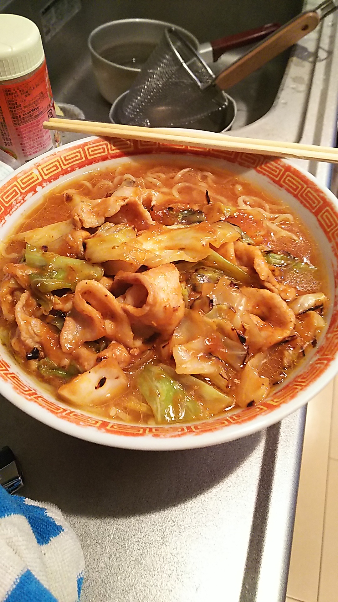 とろみ辛味噌肉キャベツ炒めのラーメン