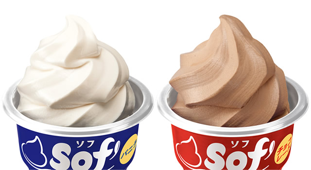 新発売となる「Sof’(ソフ)」は、ソフトクリームの美味しい「上」の部分だけを商品としたカップアイスです。