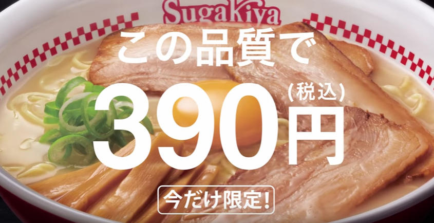 17年くらい前はハンバーガー5つとスガキヤのラーメンが同じくらいの値段だった。