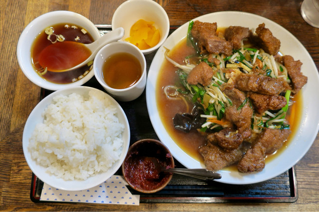 バラ肉使った焼き肉定食(ニンニクの芽入り)