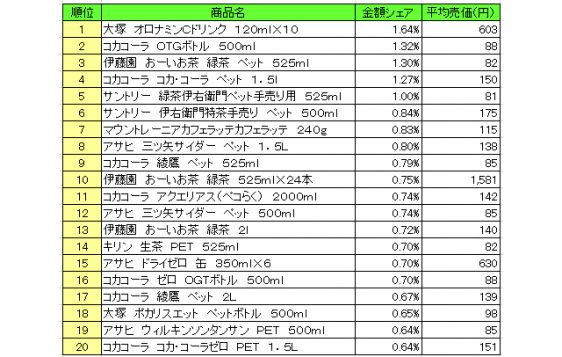 これ3月だけのデータで夏場になるとポカリやアクエリが上位にくるけど
