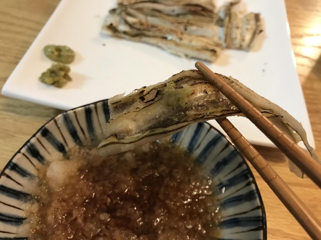 やっぱりわさび塩が一番、くせだけを消して味を残してくれる感じで美味いかも