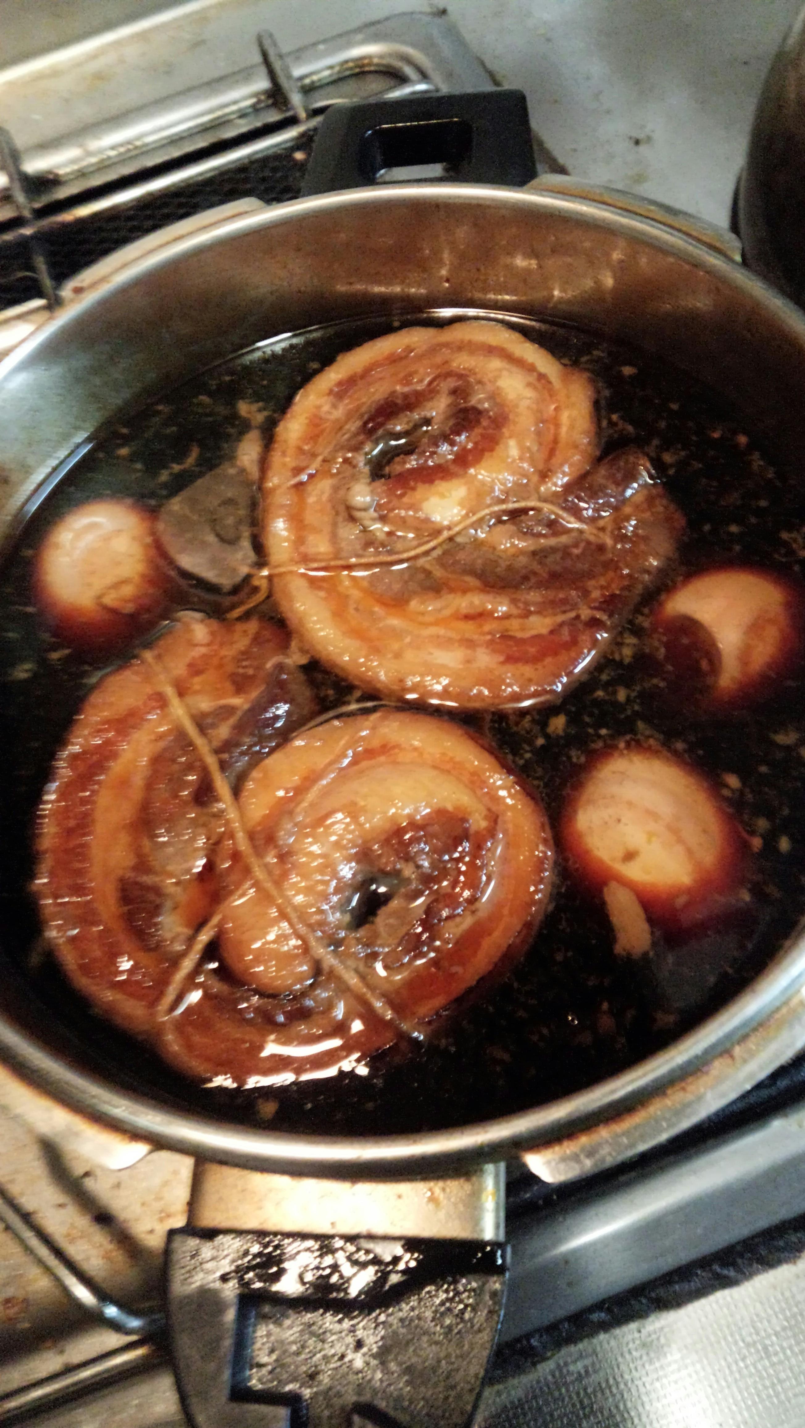 時短で作ると圧力鍋で沸騰10分加圧冷ましてから違う鍋に移して煮詰めて30分タレにとろみがついたら出来上がり・・・・3時間鍋で煮込んでも出来るけど面倒