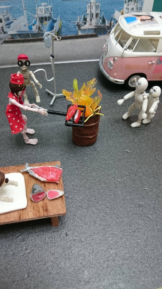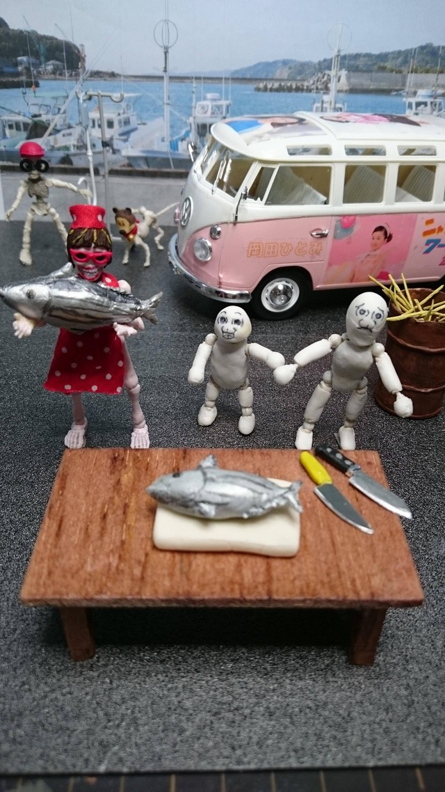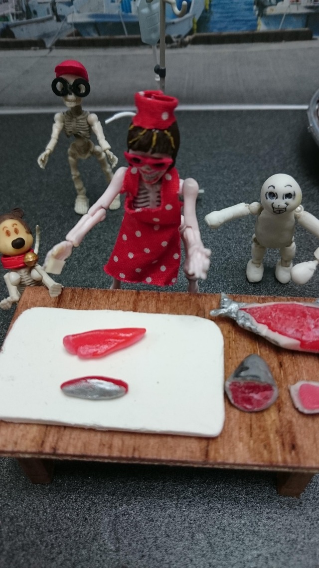いつもの粘土の人だ!わくわくさん、大惨事で点滴(笑)焼いた鰹の色味とか、流血の表現がサクラとか、プロだなあ。