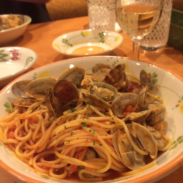 トマトボンゴレ、パスタがちょい少なめだったがアサリたくさんあってむっちゃうまかったな。